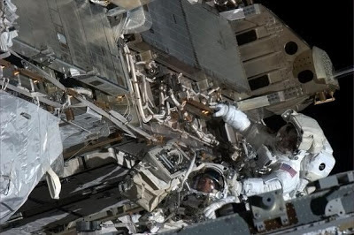 Today's activities outside were brought to a close when the hatch to the Quest Airlock was closed at 7:14 p.m. GMT. The astronauts spent a total of 5 hours and 30 minutes outside and all in all, the spacewalk and repair could not have gone any better, with Marshburn and Cassidy finishing their excursion one hour ahead of schedule. It is still unclear at this present time what originally caused the ammonia leak, but seeing that no leak or flakes were visible after the new PFCS was installed, the old pump seemed to be the cause of the problem. Official confirmation of the source of the leak may take days, if not weeks to figure out.